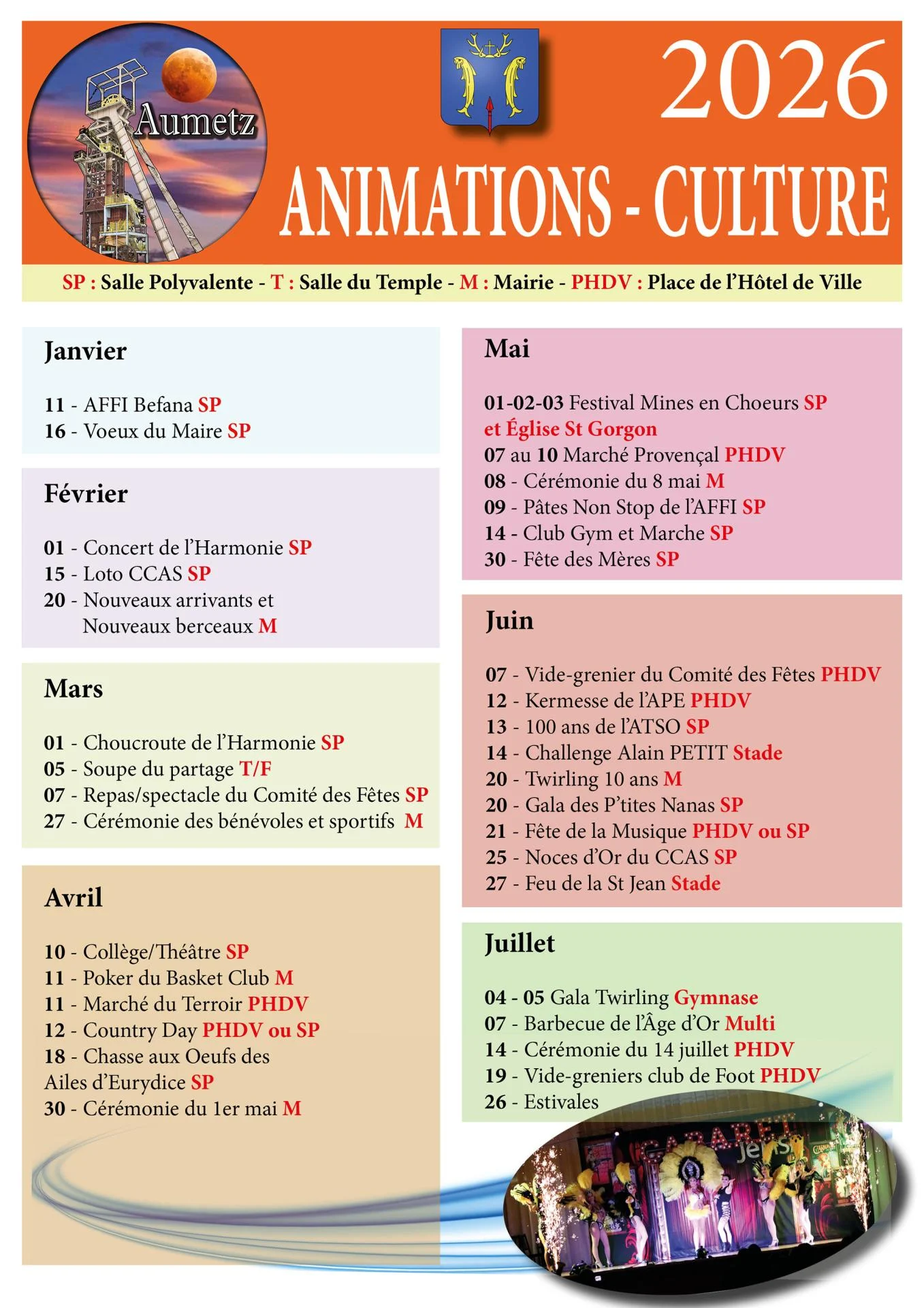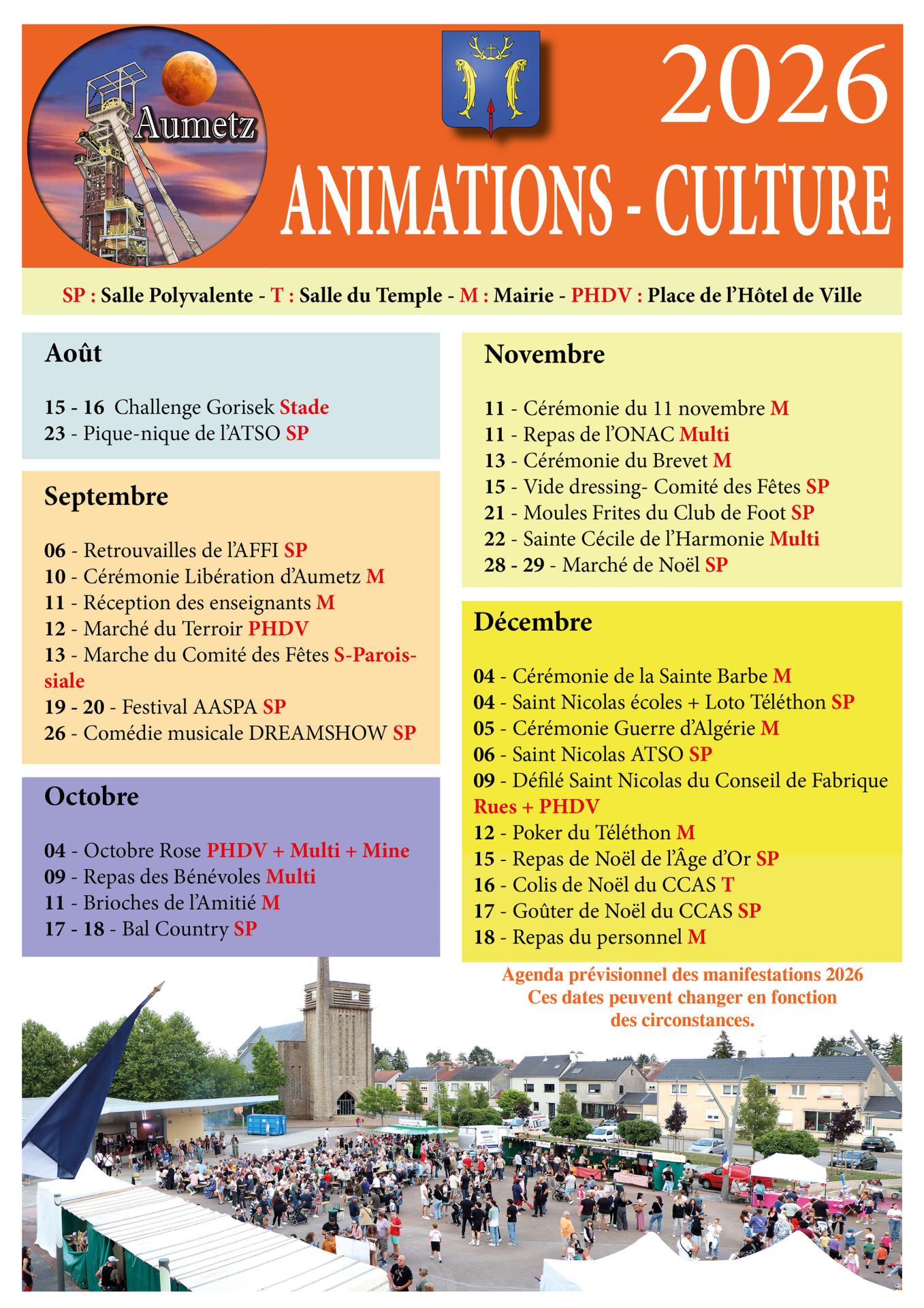 Ceci est un calendrier prévisionnel à l'année, certaines dates peuvent être modifiées ou annulées.